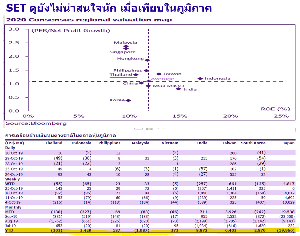 ส่วนกลุ่มมูลค่าน่าสนใจ ตลาดอินเดียน่าสนใจที่สุด โดย PEG ต่ำกว่า 1 เท่า แต่ ROE เติบโตสูงถึง 15% ไม่แปลกที่ YTD ต่างชาติจะซื้อสะสมไปแล้วกว่า 8.9 พันล้านเหรียญ ส่วนตลาดไต้หวัน และอินโดฯ แม้ PEG ใกล้เคียง SET แต่ ROE เติบโตดีกว่า ต่างชาติก็ยังซื้อสุทธิ หรือแม้แต่ตลาดเกาหลีใต้ แม้ ROE ต่ำกว่าเรา แต่ระดับ PEG ต่ำมาก ต่างชาติก็ซื้อสุทธิเช่นกัน
