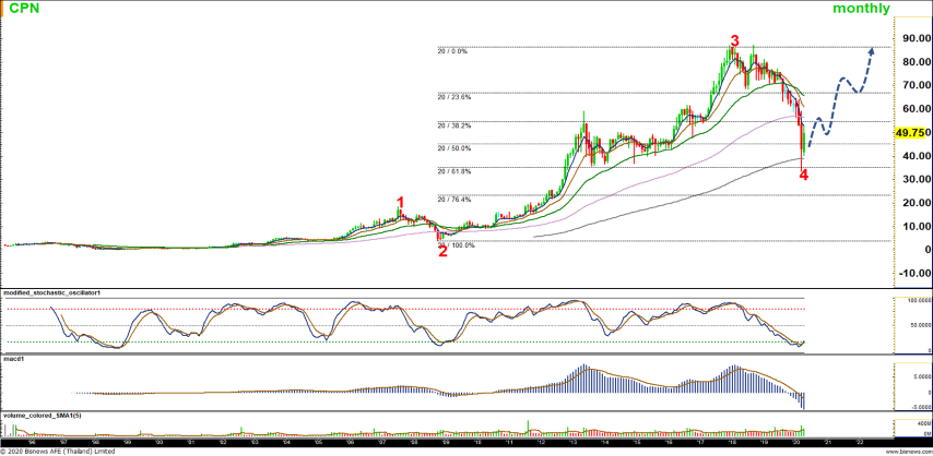 อ่านคลื่นหุ้นรายตัว CPN June 7, 2020 Ong CPN : พักตัวลงมาเป็นคลื่น 4 ซึ่งคาดทำจุดต่ำไปแล้วบริเวณ 35.00 บาท และภาพระยะถัดไป จะฟอร์มตัวขึ้นเป็นคลื่น 5 โดยมีแนวเป้าหมายที่ 87 และ 99 บาท ทั้งนี้ หากต่ำกว่า 35.00 บาท จะเป็นสัญญาณที่ไม่ดีในภาพรวม